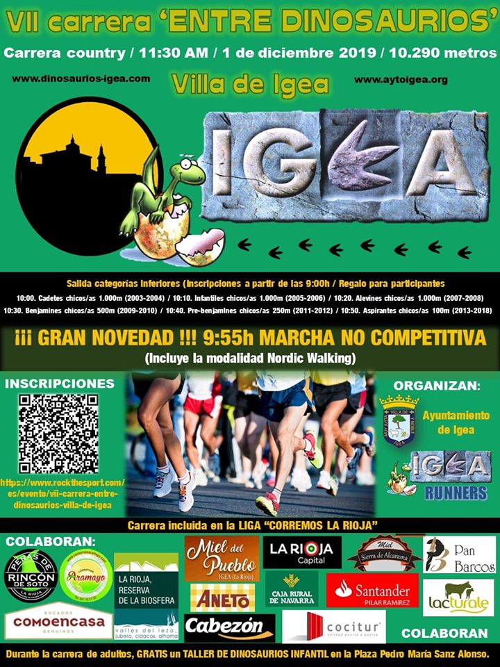 « Todos los Eventos Este evento ha pasado. Carrera ‘Entre Dinosaurios’de Igea. 1 diciembre, 2019 @ 11:30 - 13:30 4€ – 8€ « I Carrera por la Educación,la Familia y la Vida Saludable de La Rioja. 42º Media Maratón de Vitoria Gasteiz. » + Google Calendar+ Exportación de iCal Detalles Fecha: 1 diciembre, 2019 Hora: 11:30 - 13:30 Precio: 4€ – 8€ Categoría del Evento: Carrera Web: http://www.aytoigea.org/ Organizador Ayuntamiento de Igea e Igea Runners. Local Igea.