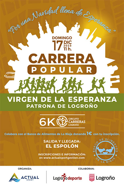 « Todos los Eventos Este evento ha pasado. Carrera Virgen de La Esperanza de Logroño 16 diciembre, 2023 @ 15:30 - 18:00 10€ « Carrera Virgen de La Esperanza de Cenicero Media Maratón de Vitoria » + Google Calendar+ Exportación de iCal Detalles Fecha: 16 diciembre, 2023 Hora: 15:30 - 18:00 Precio: 10€ Categoría del Evento: Carrera Web: www.actualsportgestion.com/carrera-popular-virgen-de-la-esperanza-patrona-de-logroño-2023