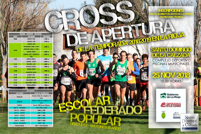 Santo Domingo de La Calzada acogerá el día 25 de noviembre (domingo) desde las 10:00 horas el Cross de apertura de la temporada 2018/2019 en La Rioja,que tendrá distintas distancias y categorías.