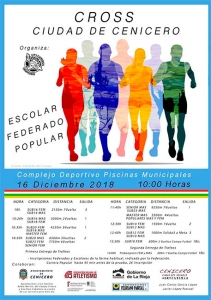 Por primera vez,Cenicero celebrará su I Cross Ciudad de Cenicero que tendrá lugar en el Complejo deportivo Piscinas Municipales y que tendrá un coste de 2€,excepto los federados.La prueba tiene distintos horarios según las categorías,tanto prueba popular como federada.